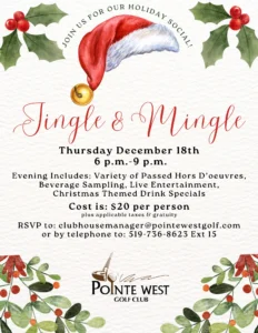 Celebrate the Holidays with Fellow Members and Enjoy an Evening of Holiday Cocktails, Music and Great Friends! …. Reservations are Recommended!