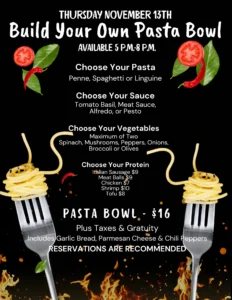November Pasta Bowl Join Us in the Dining Room for this Club Favourite!… Available 5 p.m. – 8 p.m.! Dining Reservations are Recommended Name(Required) First Last Member Number(Required)Email Reservation Confirmation to:(Required) Contact Phone NumberDate You Will Be Joining Us?(Required) MM slash DD slash YYYY Time You Will Be Joining Us?(Required) Hours : Minutes AM/PM AM PM AM/PM Total Number of Members/Guests Attending(Required)Special Requests: Date Nov 13 2025 Time 5:00 pm - 8:00 pm